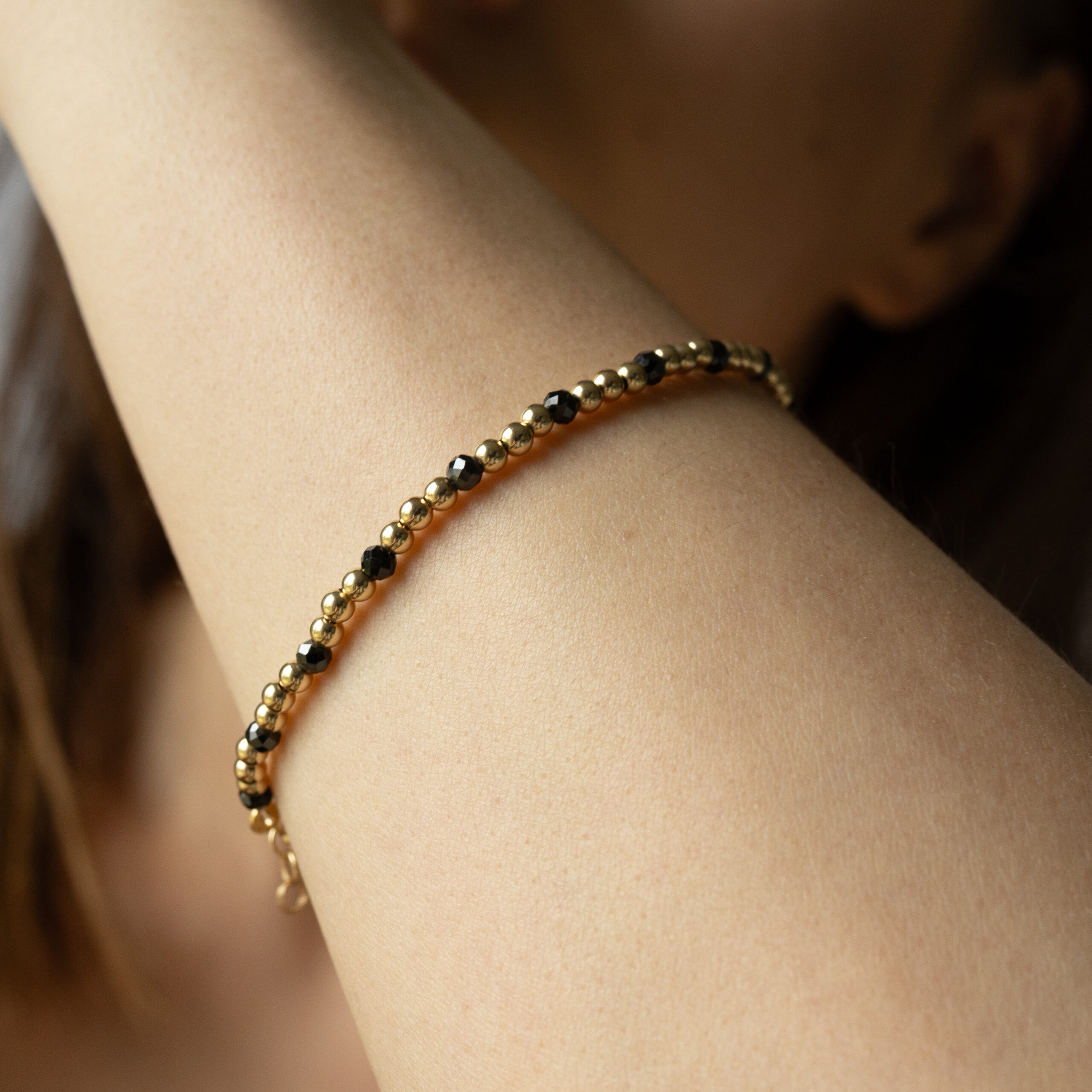 Bransoletka ze złotymi i czarnymi kulkami Gold Silk
