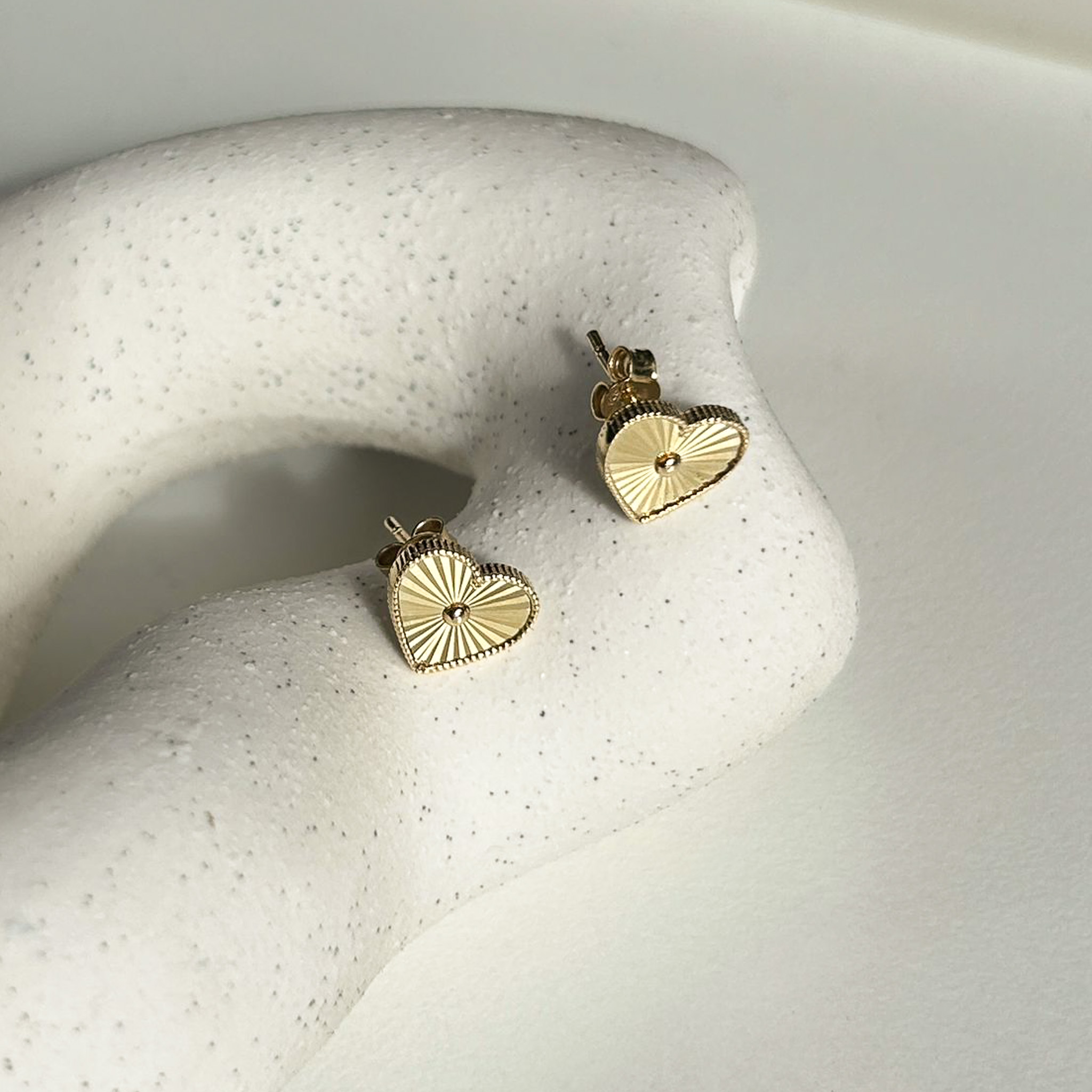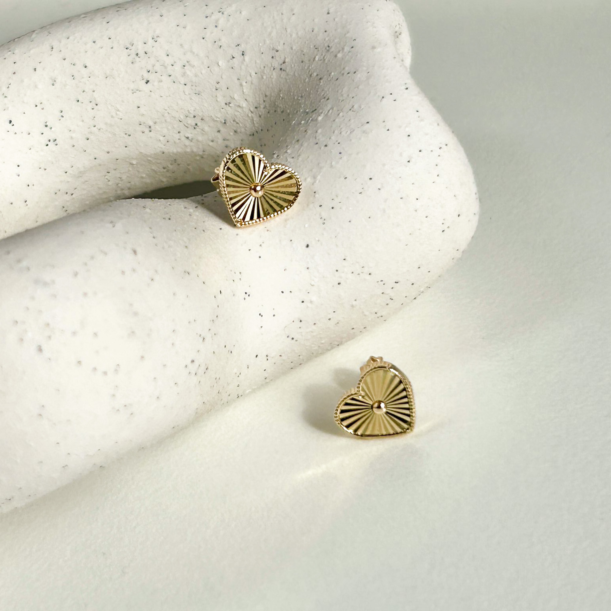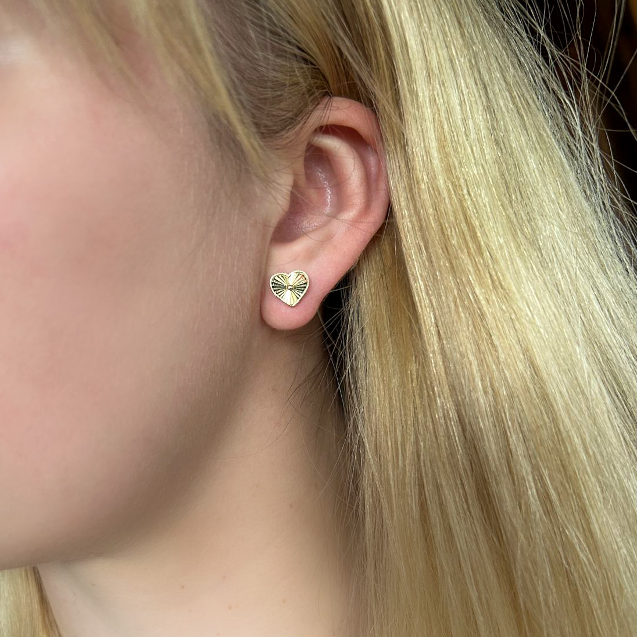 • Kolczyki złote diamentowane serce na zatyczkę