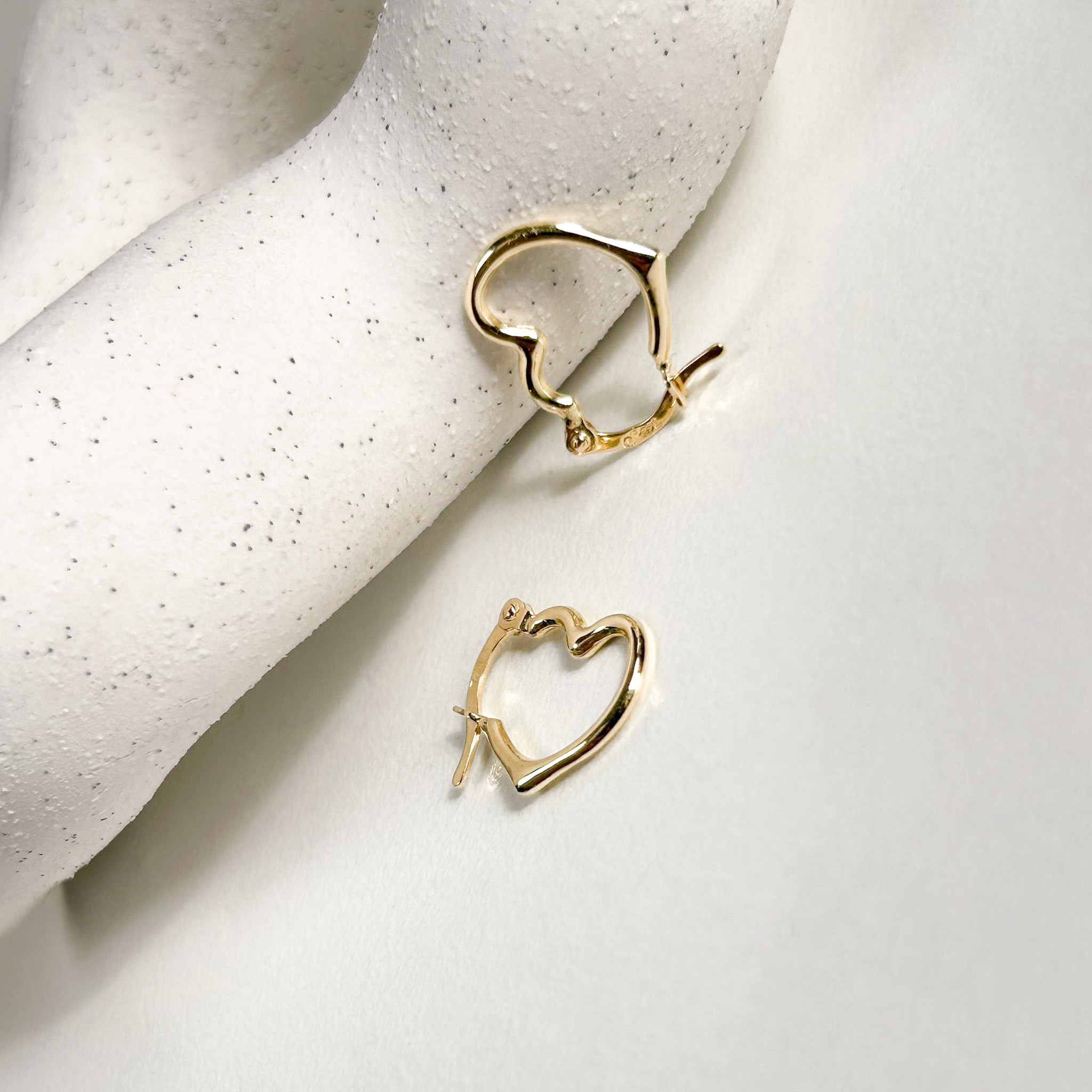 Dodaj odrobinę blasku swojej codzienności. Kolczyki złote serca wiszące na zatrzask o nieregularnej, nowoczesnej linii to idealne połączenie romantyzmu z minimalistycznym designem. Dlaczego warto? Lekka forma sprawia, że są niezwykle komfortowe w noszeniu przez cały dzień, a solidne zapięcie daje pewność, że zawsze pozostaną na swoim miejscu. To również doskonały pomysł na prezent dla bliskiej osoby.