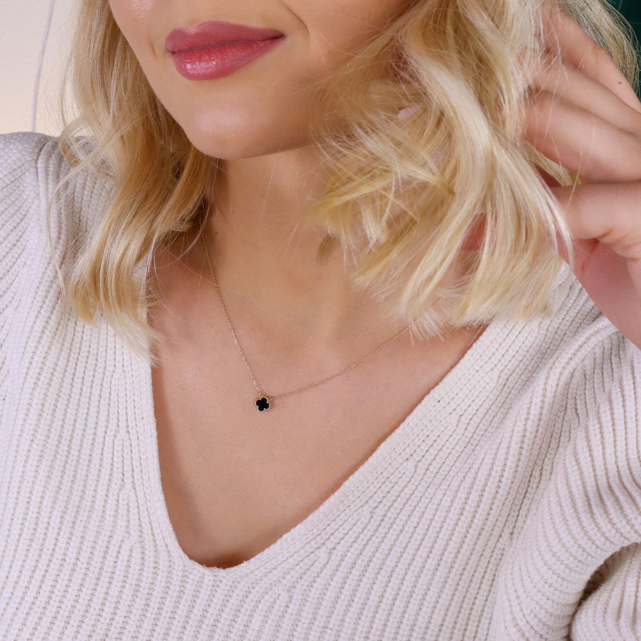 • Naszyjnik złoty z czarną koniczynką 0,6 cm