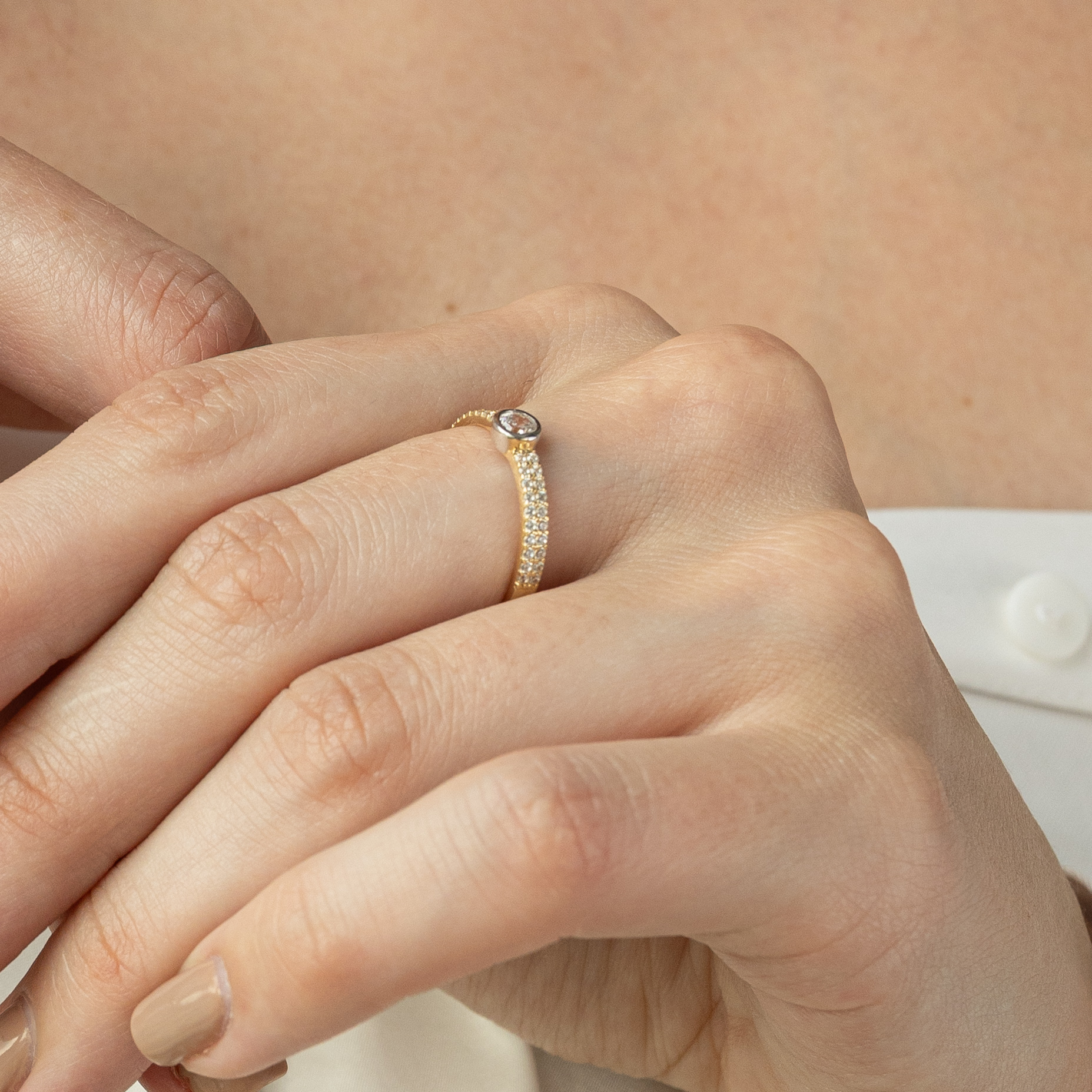 Pierścionek z Trójkolorowego Złota