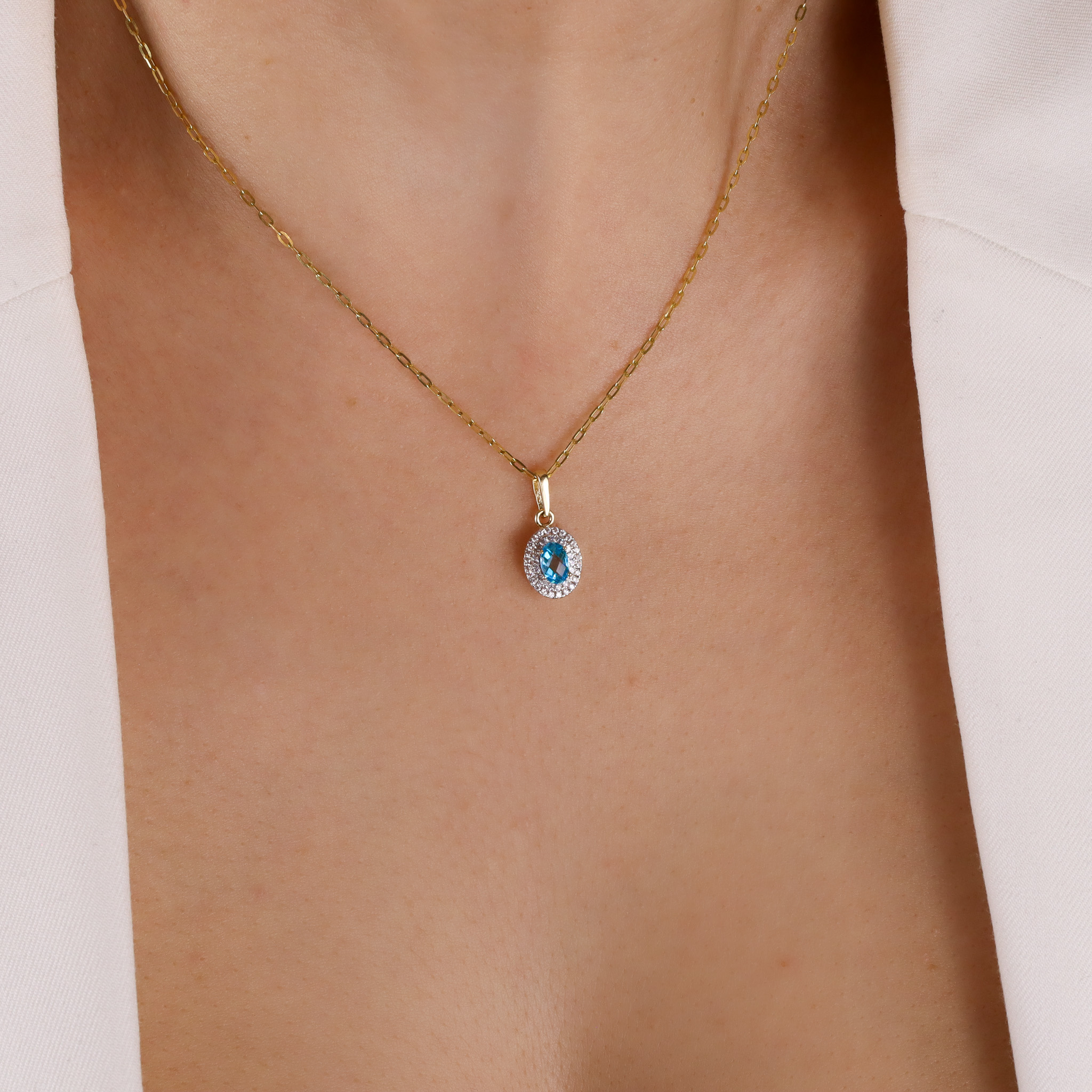Zawieszka złota z błękitnym kamieniem i cyrkoniami